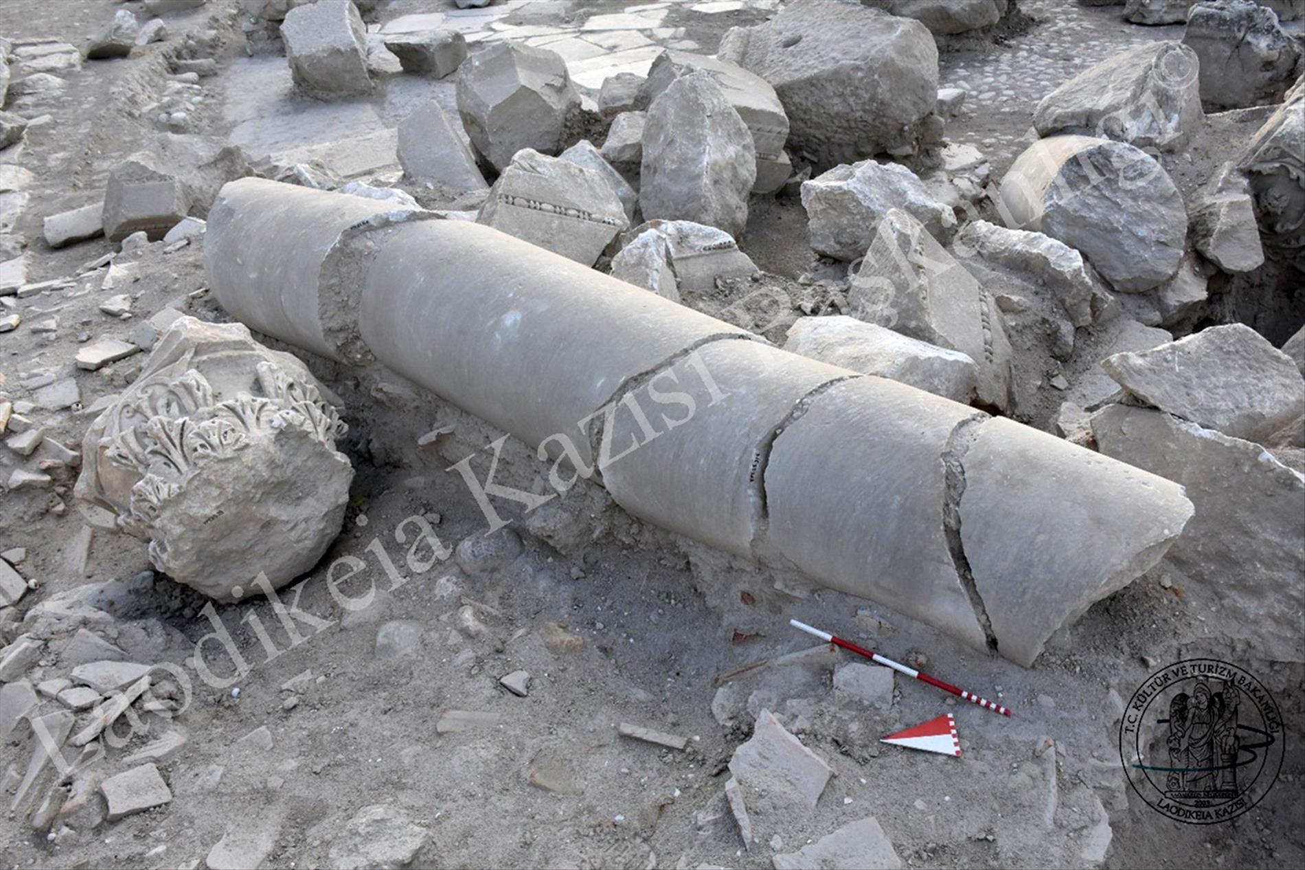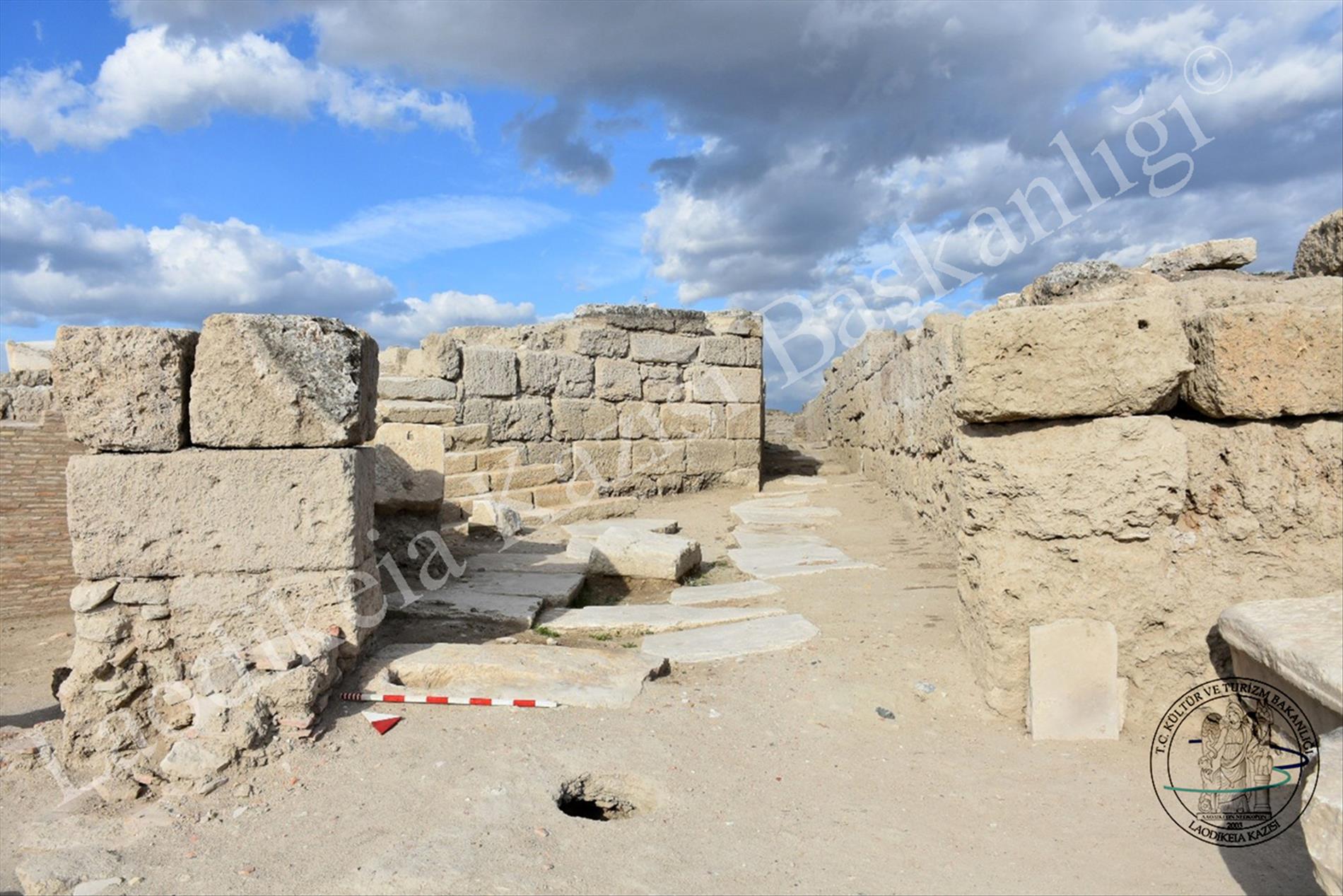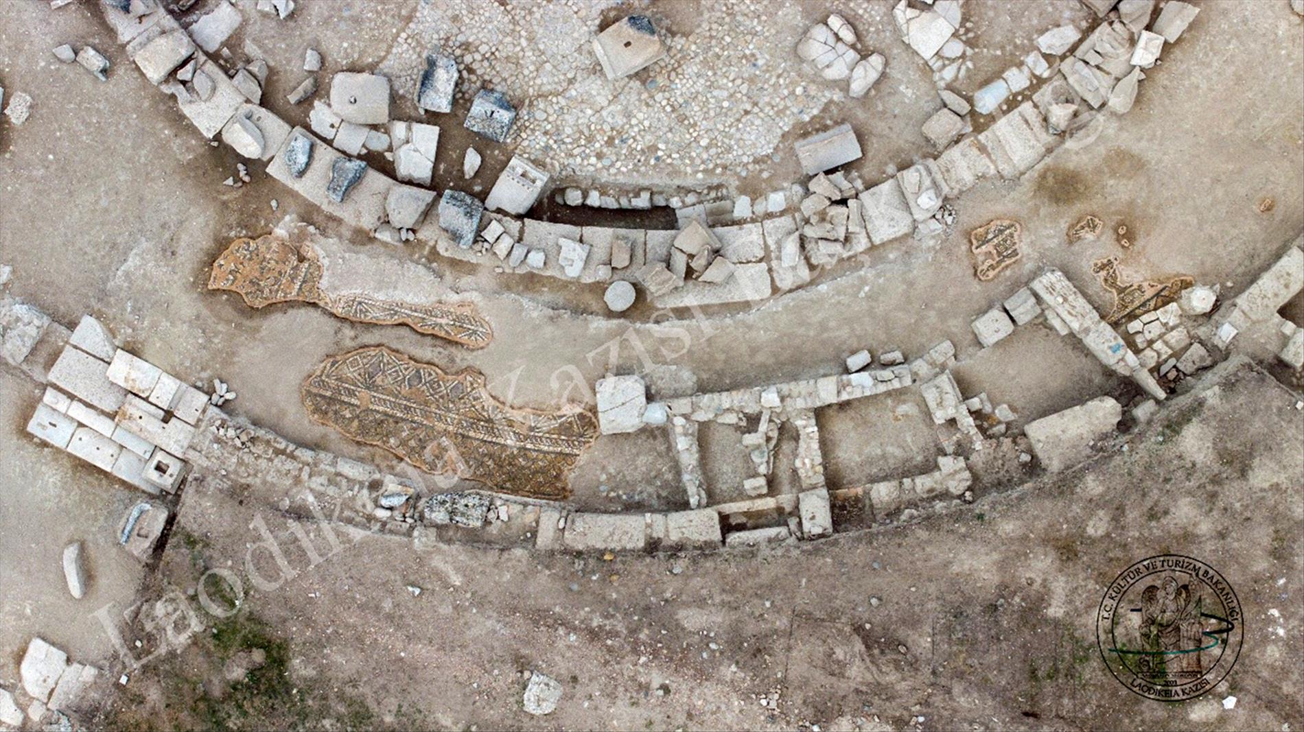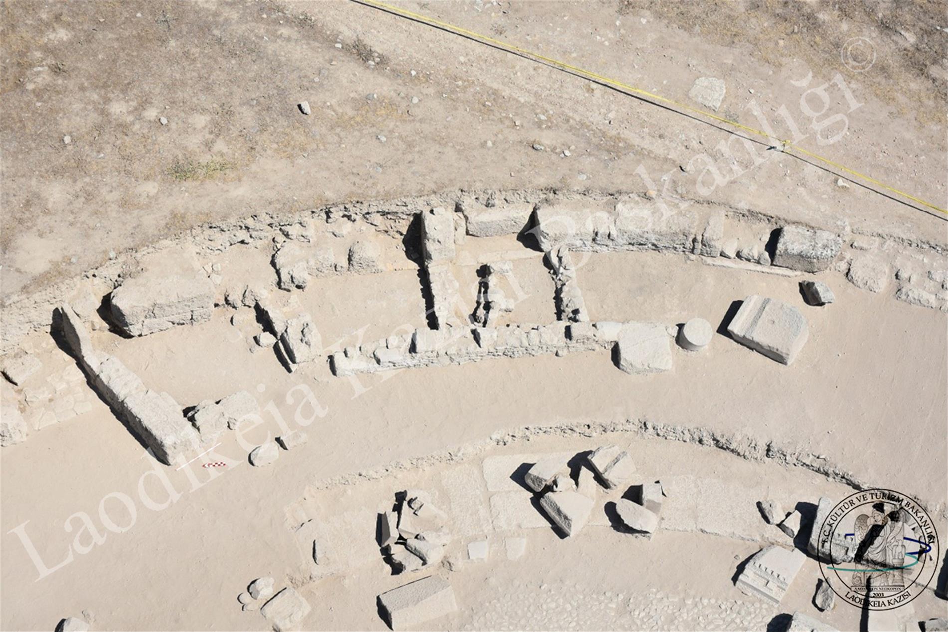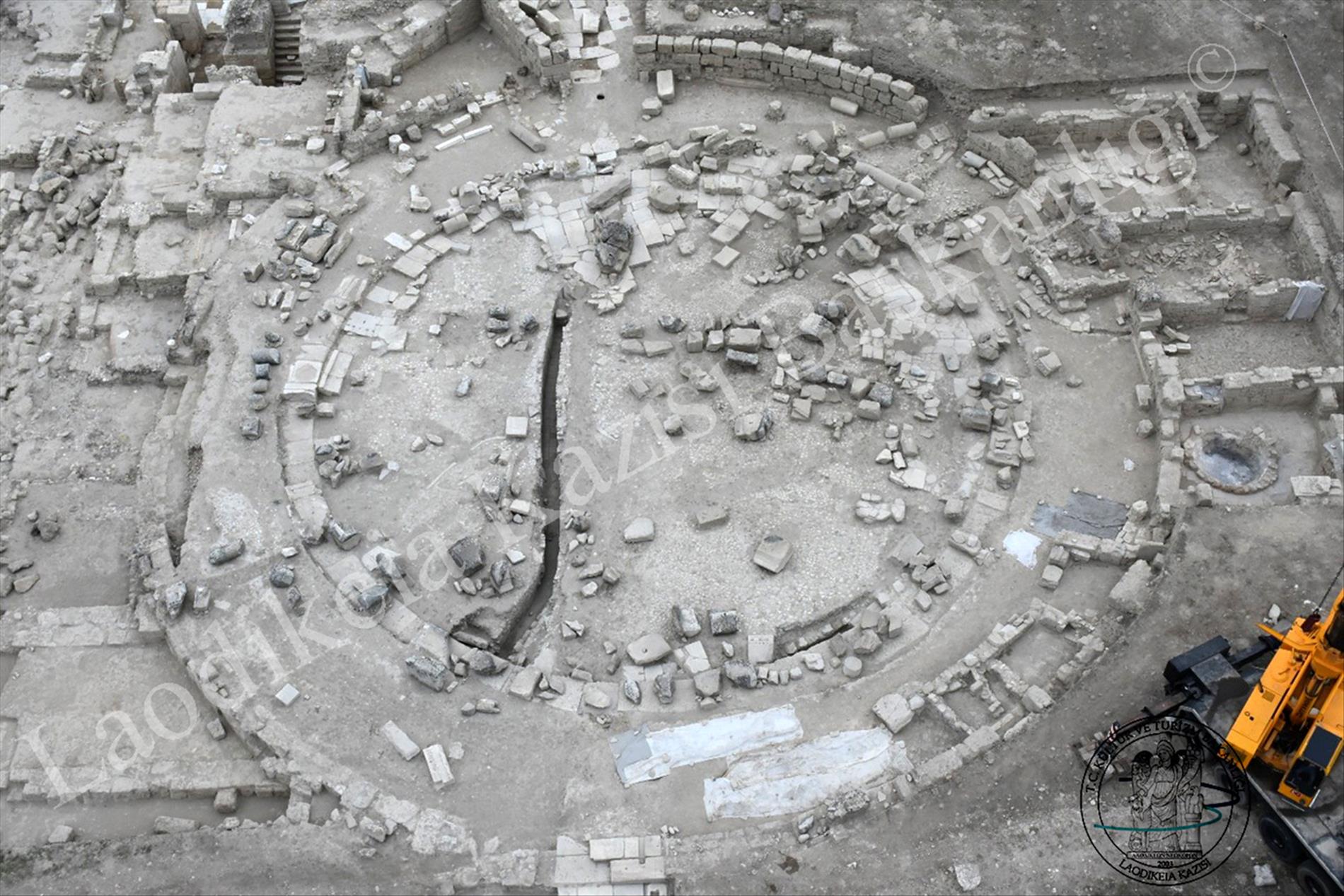 Laodikeia Yuvarlak Planlı Yapı’da yürütülen çalışmalarda, analemma duvarı ile stylobat arasındaki 5 m genişliğindeki portiğin kuzey ve kuzeydoğu bölümlerinde geometrik süslemeli mozaik döşemeler açığa çıkarılmıştır. MS 3. ve 4. yüzyılın sanat anlayışını yansıtacak şekilde krem, mavi, kırmızı ve mor tonlu tesseralarla oluşturulan bu mozaiklerde örgü-giyoş, Solomon (Süleyman) düğümü, yıldız ve üçgen motifleri işlenmiştir. Mozaik bulunmayan alanlarda ise iri çay taşlarından oluşan statümen tabakası, kaba harç (rudus) ve sıkıştırılmış toprak zemin tespit edilmiştir. Yapının portiği, dışta bir analemma duvarı ve içte içbükey profilli mermer stylobat üzerinde yükselen sütun sırasından oluşmaktadır. Portikte, dairesel mimariyle uyumlu olması amacıyla sekizgen postamentli Attik-Ion tipi sütun kaideleri kullanılmıştır. Bu kaidelerin üzerinde yivsiz sütun tamburları ve Geç Hadrian-Erken Antoninler Dönemi’ne (MS 117-180) tarihlendirilen Korinth düzeninde sütun başlıkları yer almaktadır. Üst yapı elemanları arasında süslü sofit bezemeli arşitravlar, ranke bezemeli friz blokları ve üzerinde kabak ile haşhaş figürleri bulunan konsollu geison-sima blokları saptanmıştır. Tüm yatay mimari bloklar, yapının dairesel formuna uygun olarak içbükey kurgulanmıştır.